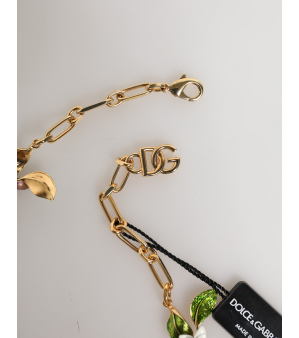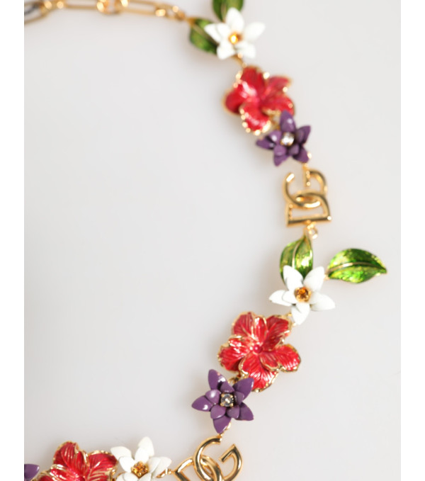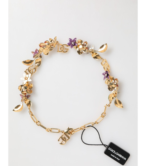 Precioso collar nuevo, 100% auténtico Dolce & Gabbana de oro con flores y logotipos DG.