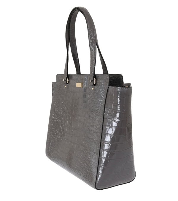 Precioso bolso tote Kate Spade New York Elisa Bristol Drive con relieve de cocodrilo, totalmente nuevo y 100 % auténtico, en gris grafito intenso. Elaborado en brillante piel con relieve de cocodrilo y herrajes dorados, este espacioso bolso tote ofrece elegancia y funcionalidad. Modelo: Elisa Bristol Drive – Material: Piel con relieve de cocodrilo – Color: Gris grafito intenso – Herrajes dorados – Cierre de cremallera – Detalles del logotipo – Medidas (aprox.): Alto 30 cm x Ancho 36 cm x Fondo 14 cm.